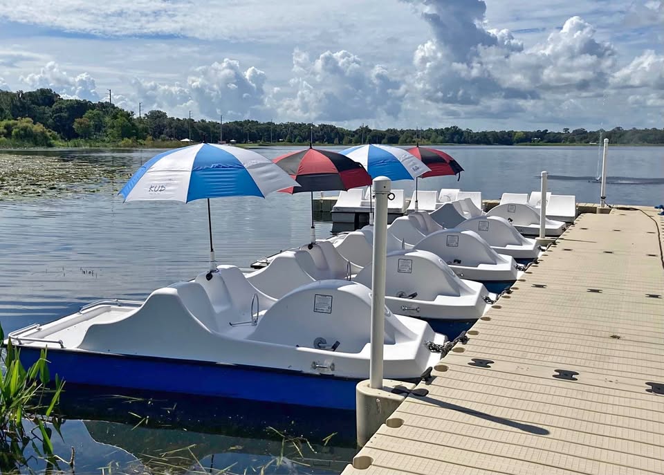 Pedal boats available for some fun teamwork and relaxation on the water.